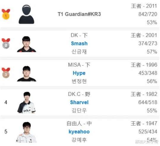 最近,一位T1青训的新星Guardian引起了不少关注,他凭借出色的表现和坚实的韩服成绩,展现了自己不容小觑的潜力,Guardian是一名出生于2004年的上单选手,如今21岁,却已在韩服达到了第一名,积分高达2011分,胜率保持在53%。