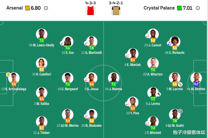 水晶宫替补:1-迪恩-亨德森、17-克莱因、42-罗德尼、86-德雷克斯-托马斯、21-埃塞。