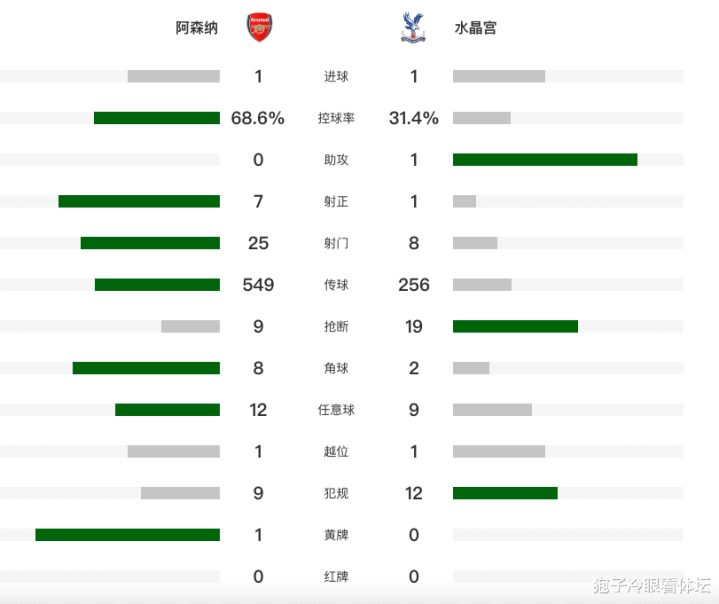 第14分钟,阿森纳获得角球,埃泽主罚,水晶宫禁区内一片混乱,马丁内利的外脚背射门打偏了。热苏斯投诉对方手球,裁判没有任何表示。