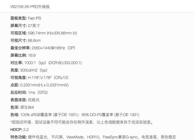 股海策略 优派推出“VX2758-2K-PRO”27英寸显示器:2K 185Hz,841元